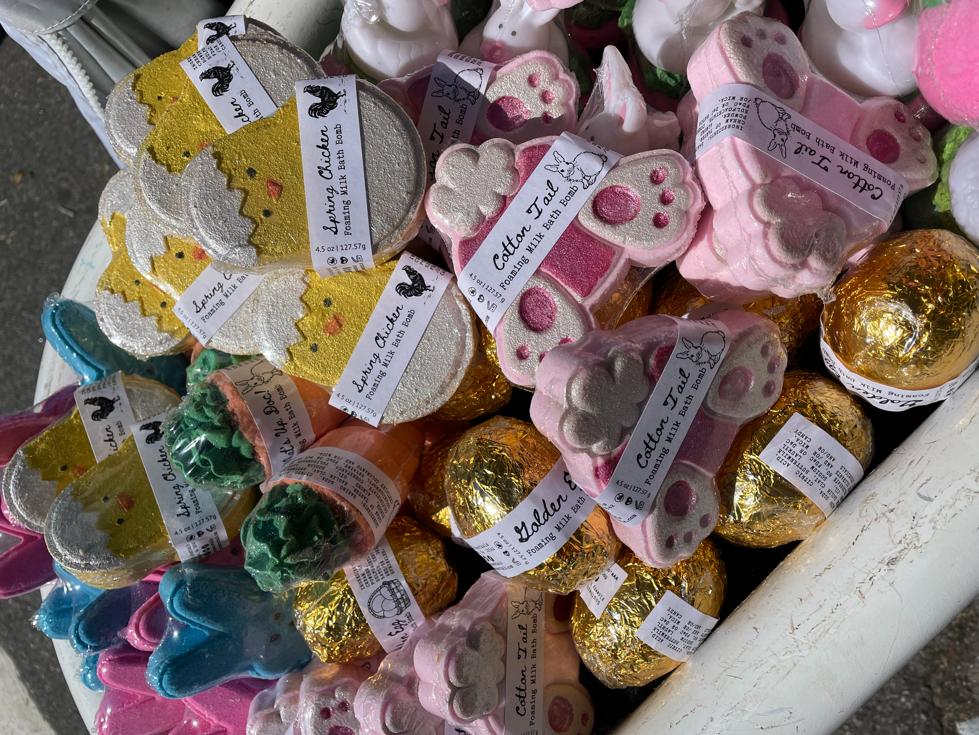 Ingredients: Baking Soda, Citric Acid, Cream of Tarter, Kaolin Clay, Buttermilk Powder, SLSA, Almond Oil, Fragrance Oil, Polysorbate 80, Isopropyl Alcohol, FD&D Batch Certified Colorants and or Mica's.